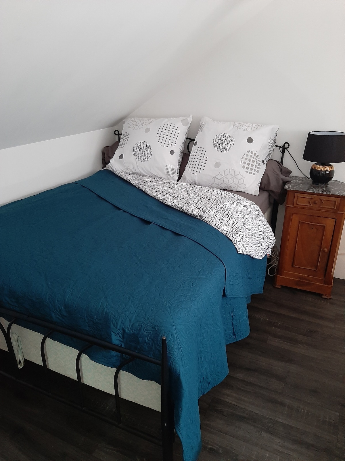 Chambre avec 1 lit double. Salle de bains privative avec linge de toilette Petit déjeuner sans supplément. Vous apprécierez votre séjour dans notre logement situé dans un quartier calme à 15 mn du circuit des 24 h du Mans et à 3 km de la sortie d'autoroute (A28). Gare à proximité (15 mn à pied). Possibilité de repas sur demande pour le soir. Réservation minimum 2 nuits pour les événements sur le circuit des 24 h du Mans Chambre supplémentaire avec un lit 2 personnes disponible (25 € par nuit)