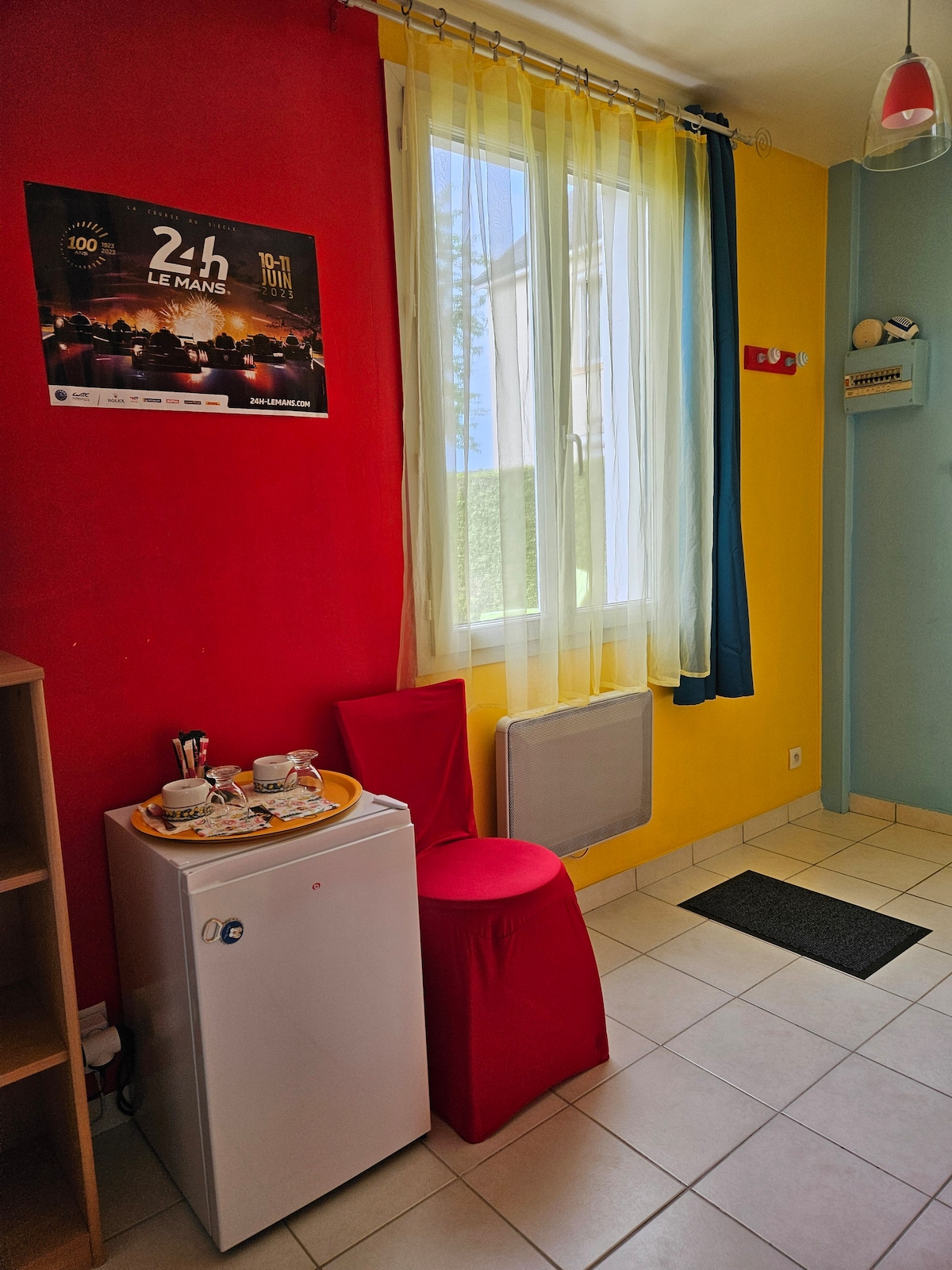 A 16 mns du circuit des 24H00 du Mans A 6 mns du Pole Européen du cheval Chambre lumineuse au rez-de-chaussée avec petite salle de bain privative Parking privé sécurisé Petit déjeuner possible (supplément 6€/pers) Possibilité d’une chambre supplémentaire en option ( 30€/nuit )