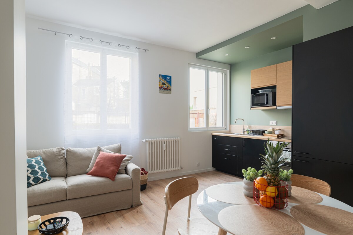 🌟Évasion des 24h🏎️🏁🌟 | Confort & Proximité 🌟 Bienvenue dans votre cocon manceau ! Ce charmant appartement T2, situé à seulement 5 minutes du centre-ville et de la cathédrale Saint-Julien, est idéal pour un séjour personnel ou professionnel. Que vous soyez passionné par le mythique circuit des 24h du Mans, amateur de patrimoine historique, ou simplement en quête d’une pause conviviale, ce logement a tout pour vous séduire.
