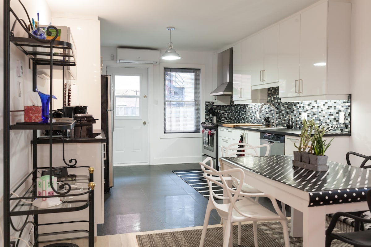 This charming 1,285 square feet townhouse has been completely renovated for maximum comfort! It features 2 bedrooms, 1.5 bathrooms, a fully equipped kitchen, and a laundry room, making it the perfect location for a family vacation! With the metro less than a 5-minute walk away and a private parking spot ($) right behind the accommodation, this townhouse is perfect for a quiet and enjoyable stay in the heart of Montreal.