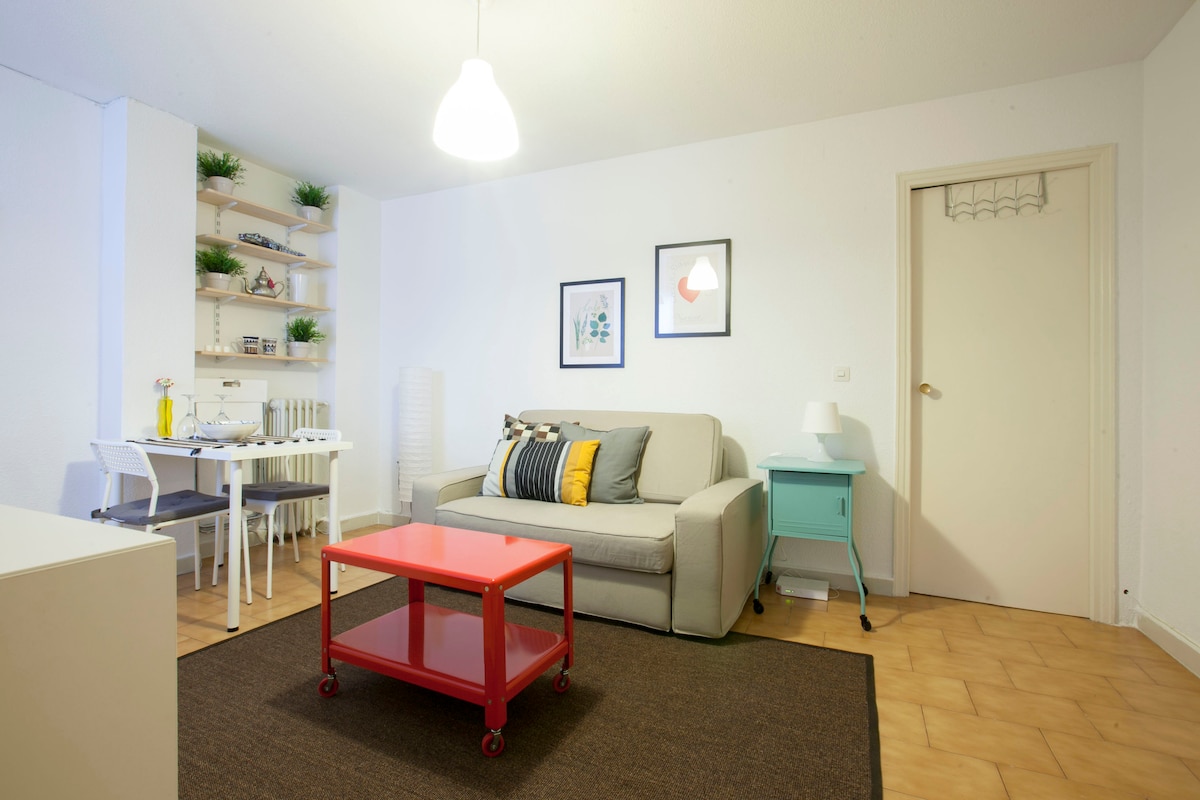 Nuevo y Moderno apartamento en el centro de Madrid, en el barrio de Chueca, uno de los barrios mas famosos de la ciuidad (bares, restaurantes, terrazas, comercios y ocio y nocturno. todos los sitios importantes para visitar son muy cerca del apartamento, se puede llegar andando.