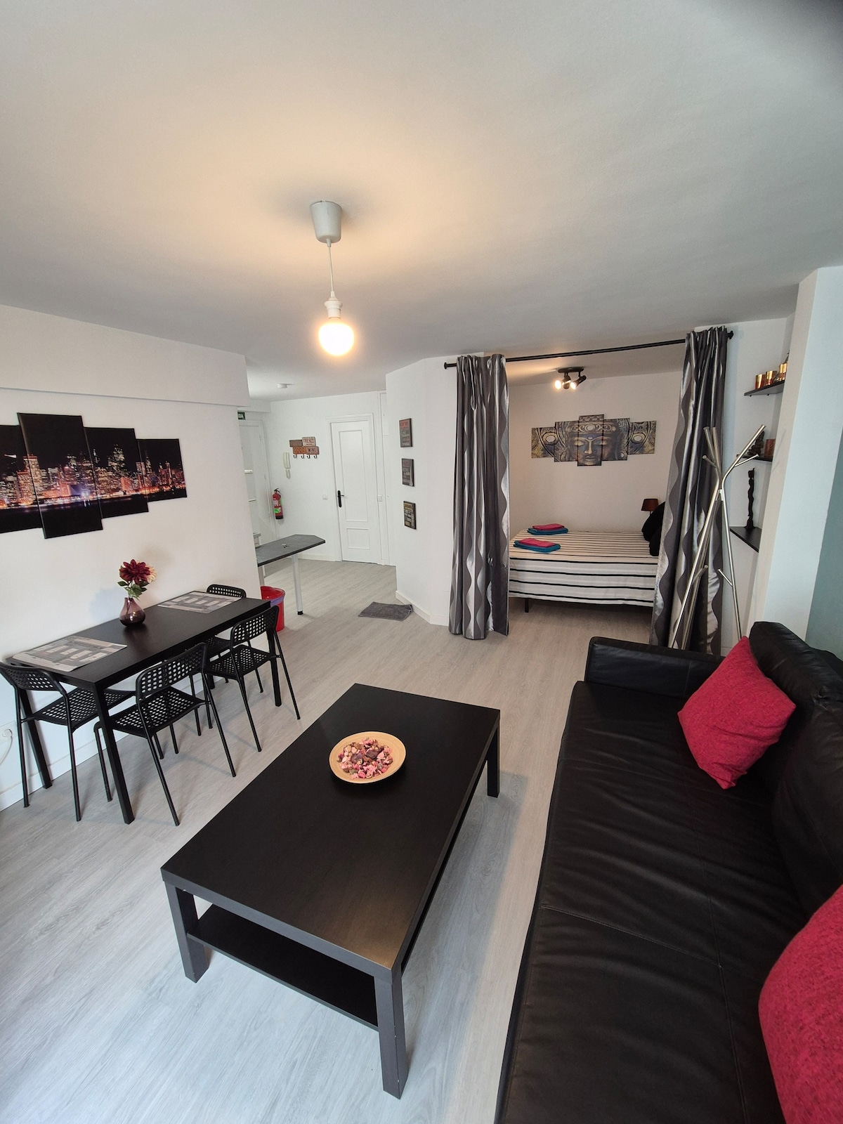 “Vine” apartment is located in Madrid center, off Gran Via, on a quiet street in a new building with elevator. It is nature-inspired, bright & modern, has WiFi, is fully equipped and is very close to restaurants, tapas, the Metro, shops & galleries. Best for a single, couples or couples with a kid! Pets are invited happily!!! The apartment is located in a new buliding, with an elevator! It is modern designed, with lots of greenery, themed to its name, Vine. A huge window along the length of the whole apartment overlooks a beautiful private garden. The apartment consists of a bedroom with a double bed, a living area with a single pull-out sofa, kitchen and bathroom. It has WiFi and is fully equipped, including a washing machine, TV, air conditioning, and Nespresso coffee maker - all just ready for your comfort and enjoyment! The apartment is a studio open space apartment - and it's all yours to enjoy! There are no areas in the apartment that you cannot use or access! We love hosting, but also respect our guests' privacy! We are here for you as much as you would like! Located just off Gran Via in lively buzzing Malasana neighborhood with its great range of authentic cafes, tapas & bars. Huge Zara Primark & Mango are minutes away. Best Madrid sites like Royal Palace, Puerta del Sol & Museums are in walking distance The Central Metro Station Gran Via is a 2 minute walk from the apartment. From there you can take the metro to anywhere you want in Madrid and also to all the train stations that will take you out of Madrid to the rest of Spain. If you come by car, a big parking lot is located at Barco 1, Madrid, just a minute from the apartment. There is also a bicycle-rental station close by. A hosting kit of water, soda, milk, coffee, tea and sweetners will be waiting to welcome you :-)