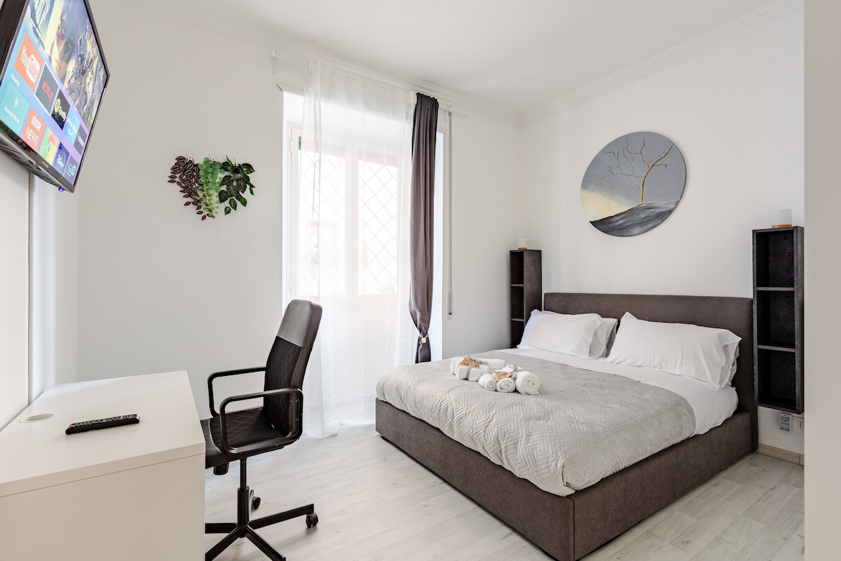A precious gem in the heart of the Aventino district, just a stone's throw away from Circo Massimo, FAO and the Colosseum. To explore the rest of the city's historic center, you can either take a leisurely stroll to admire its beauty or conveniently use the nearby subway. The house has been completely renovated by me, with furnishings featuring an elegant touch of modern design and maximum comfort. I wanted to combine beauty and convenience, so that your stay can be as special as Rome itself!
