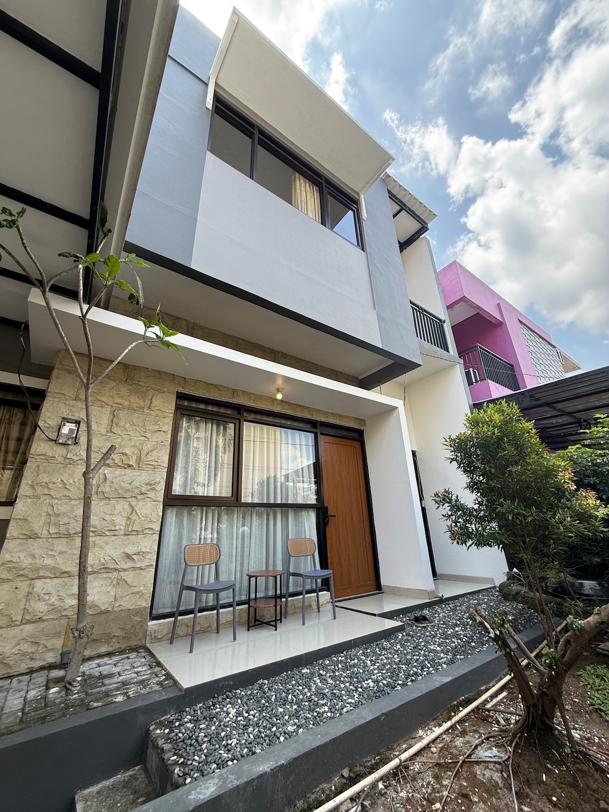 Villa dengan konsep rustic industrial, lengkap dengan private swimming pool dan mini garden untuk bermain. Bersantailah bersama seluruh keluarga di tempat menginap yang tenang ini.