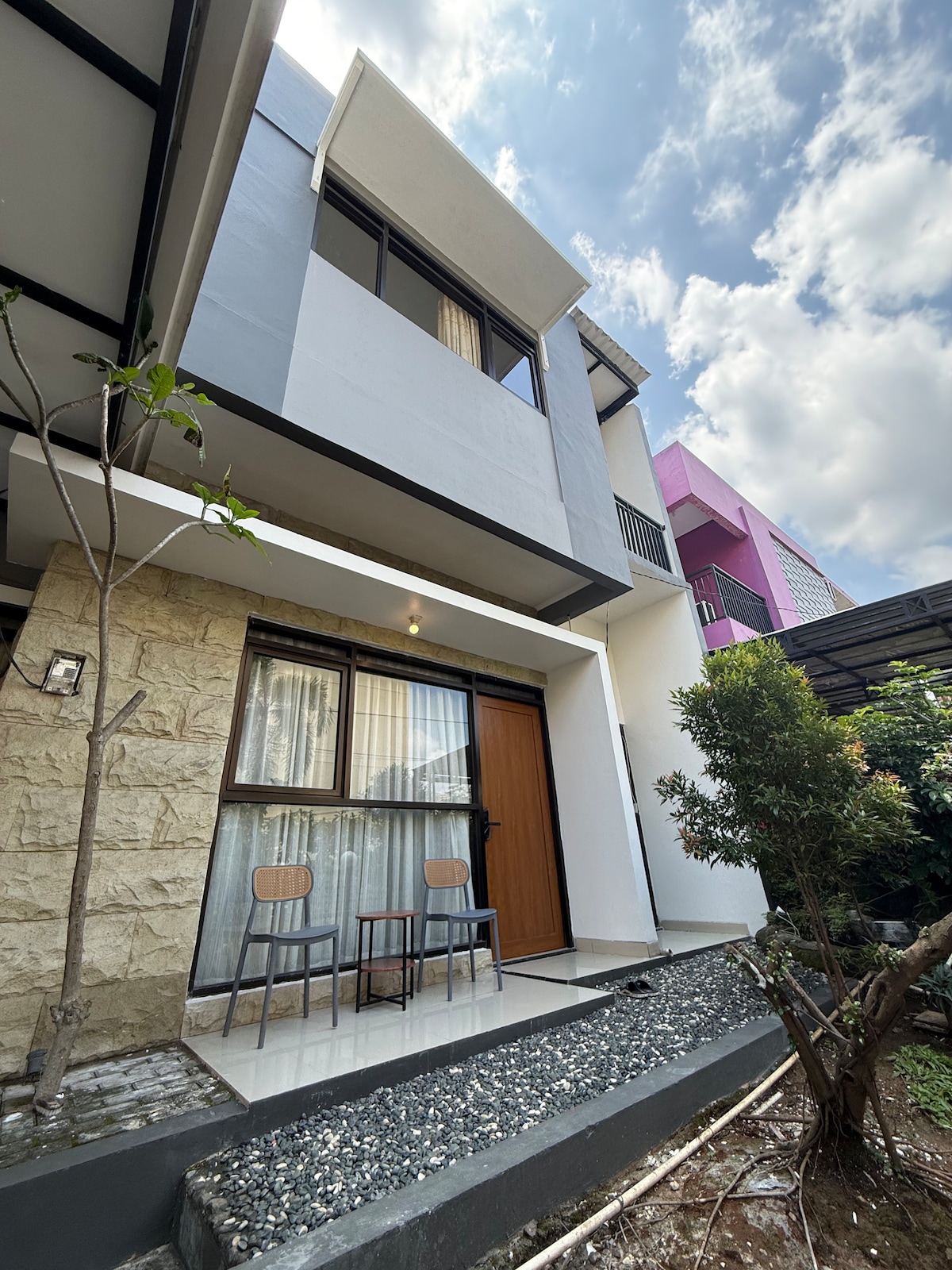 Villa dengan konsep rustic industrial, lengkap dengan private swimming pool dan mini garden untuk bermain. Bersantailah bersama seluruh keluarga di tempat menginap yang tenang ini.