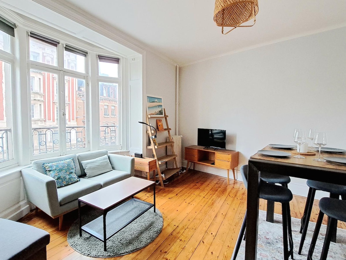Bel appartement lumineux refait à neuf, situé au coeur du Vieux Lille, rue Voltaire. A deux pas de la place du Concert, idéal pour se balader au marché le Dimanche. Vous trouverez commerces et restaurants au bout de la rue. L'appartement a une chambre ouverte sur mezzanine (bas de plafond cf photos), une cuisine entièrement équipée, et il se trouve à coté du plus beau parc de Lille ainsi que du Zoo. Confortable, spacieux et fonctionnel, vous apprécierez son charme et son ambiance cosy.