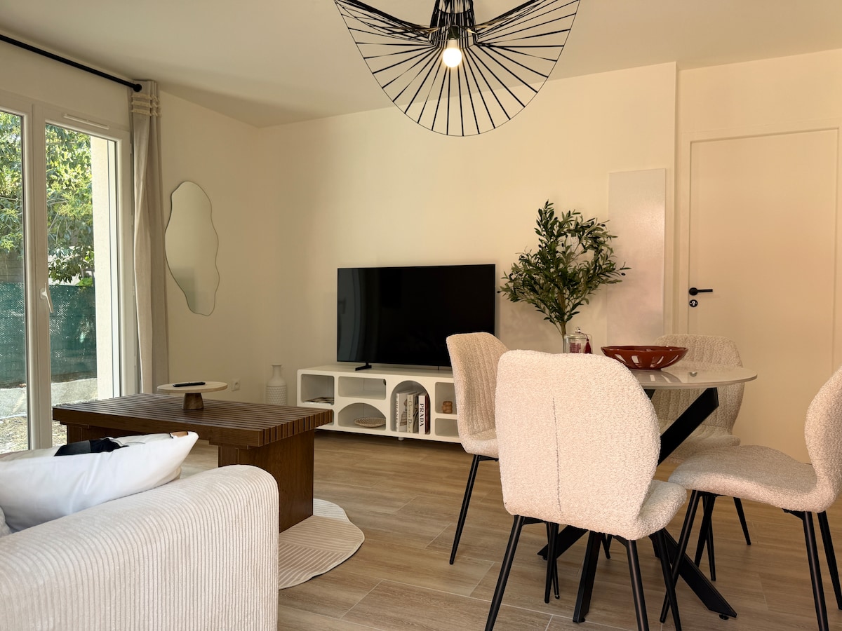 Ce charmant appartement T2 est situé dans un quartier paisible, non loin du cœur de la ville en transport. Il est idéal pour les voyageurs en quête de confort. - Luminosité : Les fenêtres inondent l'espace de lumière naturelle, créant une atmosphère accueillante. - Équipements : Vous trouverez tout pour profiter d'un séjour confortable : bureau, télévision, machine à laver, machine à café.. - Emplacement : le logement est situé aux pieds des transports en commun et à 10-15 min du centre ville.