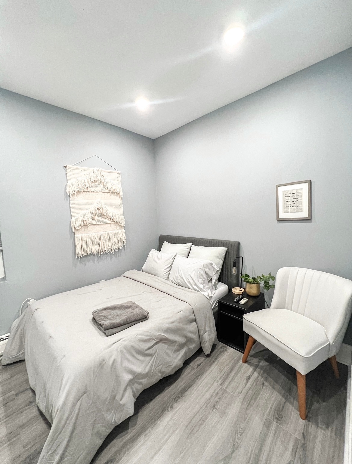 Newly renovated private suite located in the basement with private entrance and bathroom. King size bed can accommodate 2 people. Smart light fixtures and Electric sofa recliner for extra comfort. Light refreshment area with microwave, fridge, mini toaster, electric kettle and Keurig. Close to Northwell hospital and 20 mins by foot to LIRR train station. 10 minutes driving to all supermarkets, shops, library and Stepping Stone Park. Host is highly allergic to cats and dogs. No Pets Allowed!