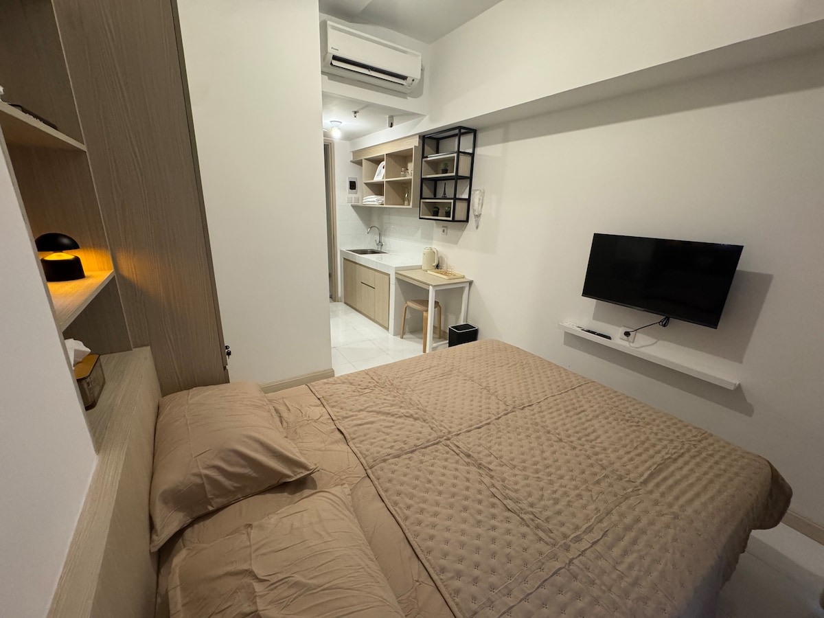 Studio Apartment with a single bed that can accomodate up to 2 person. Location is within driving distance to shopping malls and easy access to multiple highways, one can lead to the Soekarno-Hatta International Airport. This place is perfect for travellers that are looking for a short stay at Jakarta, spending most of the afternoon touring nearby areas and coming back at night to rest and prepare them for the next day. Puri&Lippo Mall and surroundings reachable within 10-15 driving minutes.
