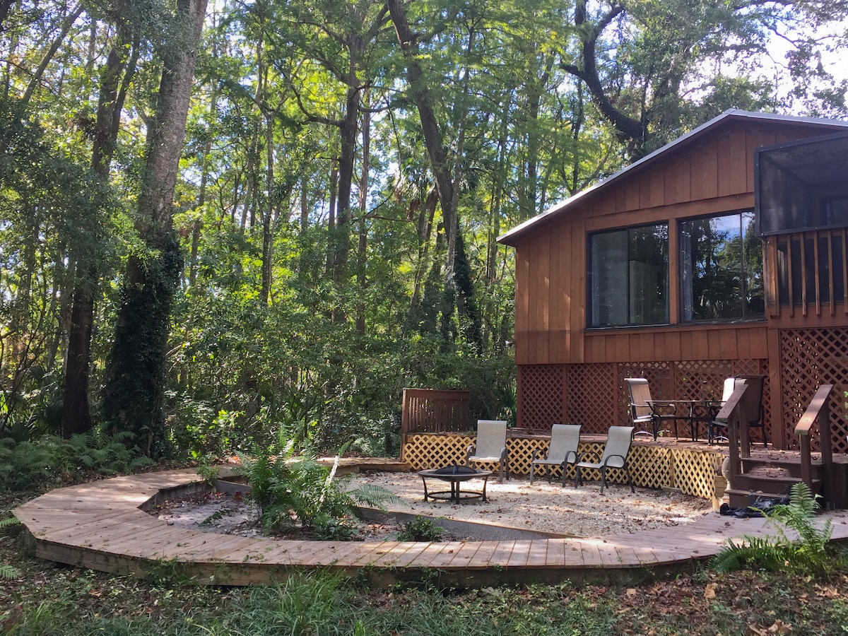 Our one-bedroom cottage sits in the middle of over 25 acres of the beautiful Florida Nature Coast. Even though we are secluded, we have all the comforts of home, from indoor plumbing and hot water to AC and Wi-Fi. Our TV has a Firestick, so bring your streaming accounts and relax night away after you retire from roasting Smores on the outdoor firepit. A fold out sleeper couch takes this from a 2 person cottage to 4 in just minutes. Parking is not an issue, even if you have a trailer.