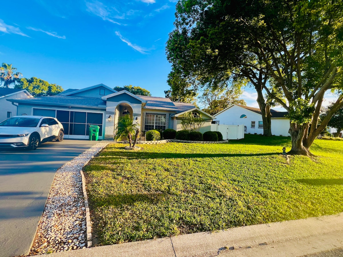 A 100% PRIVATE HOME, Eco solar power, an EV level 2 charger and a FULLY HEATED POOL. Explore old Florida with nature coast attractions that are very close to this location. Explore most outdoor attractions in mid Florida; a 45 min - 1hr drive. Extreme hurricane shutters for a safe home. Kick back and relax by the FULLY HEATED POOL. Newly renovated with sleeping space for 10 people. 3 bed room / 2 bathroom with a day room / 4th sleeping space with 1 futon in the master. Luxury on a budget.