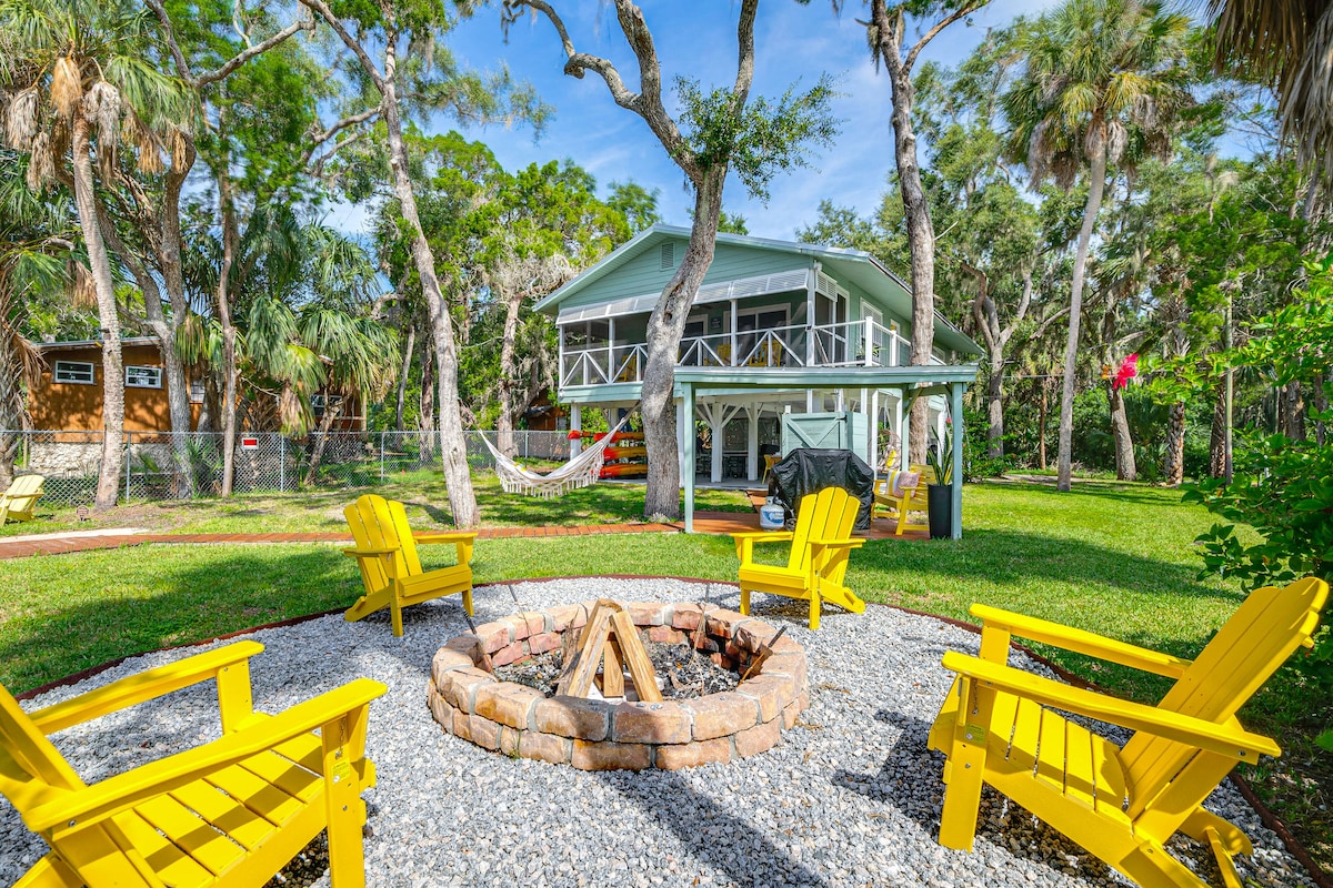 10/28/25: our hot tub is now open for the season! Come adventure with us off the beaten path! Our property is for guests age 18 & up. Roam wild and free on our 5 acres of magical forest tucked away in the middle of Citrus County, making it a perfect, central spot to Crystal River, Rainbow River & Inverness bike trails! You'll enjoy wooded views with lots of lovely old oak trees and the Old Florida nostalgia of being surrounded by nature. Curl up by a cozy fire at night, relax and unwind.
