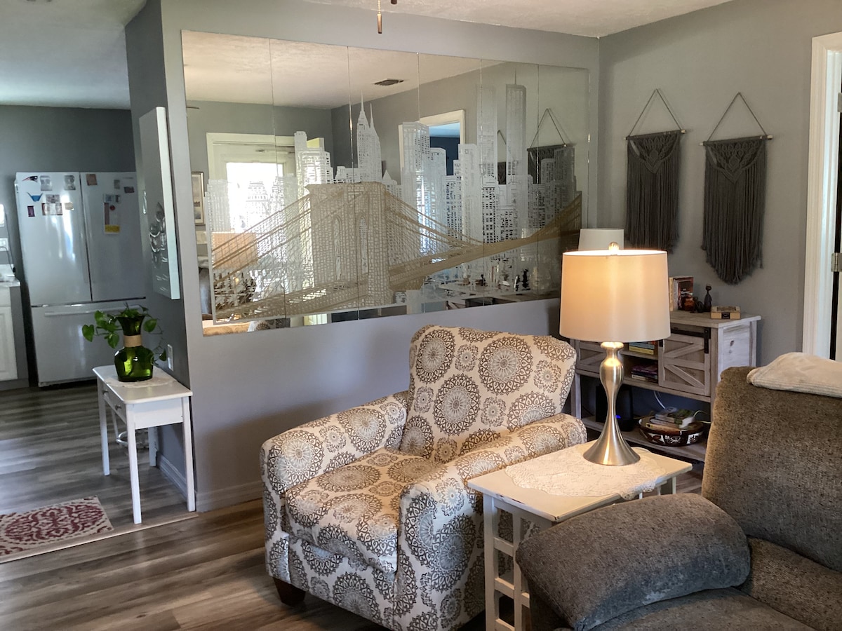 Our tranquil getaway! Whether on vacation or traveling for work, this is the place to stay! With a beautiful pool and gigantic screened in area with comfortable patio furniture and a place to have your meals outside, you can't beat our guest house for enjoying Florida's weather. Inside, we have just added a stunningly comfortable new Queen sized bed with a "Purple" mattress on an adjustable frame. We have hi speed wi-fi and a large screen TV with Amazon Prime, Netflix, and more.
