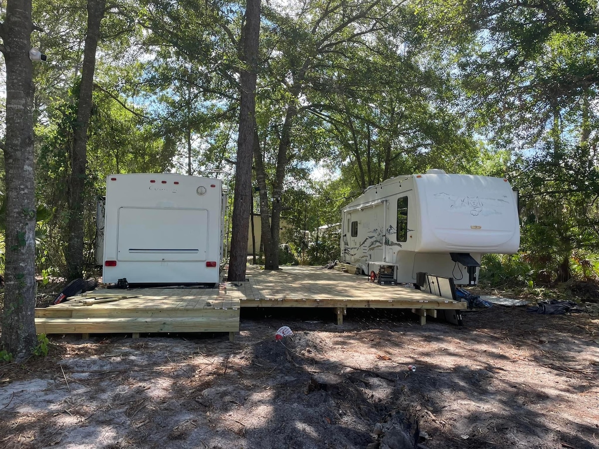 Spacious well kept 5th wheel located on the Hernando and Inverness lakes system. Miles of water just feet from your door! Extra large private lot in peaceful little neighborhood off the beaten path with a feeling of the "old florida". We have equipped this vacation spot with everything you need to enjoy your stay, including free use of kayaks. Come visit us!