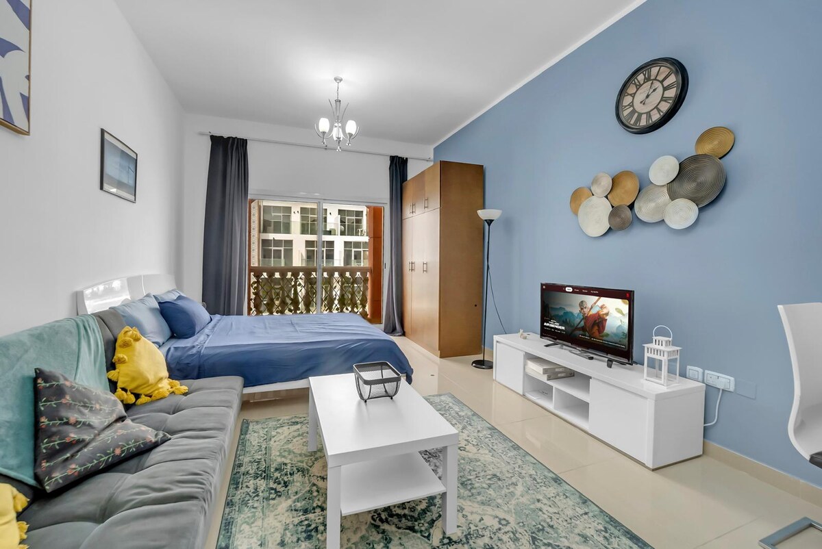 New and large studio apartment with fantastic city view in the heart of JVC and at 15 minutes for Dubai Marina . The apartment is composed by: one bedroom and living room with sofa bed in a unique space with bathroom and great city view with balcony. It’s perfect for couples or friends or family. Within the building there are pool, gym and sauna. Self check-in available, reception h24 and free parking (place B2-31)!