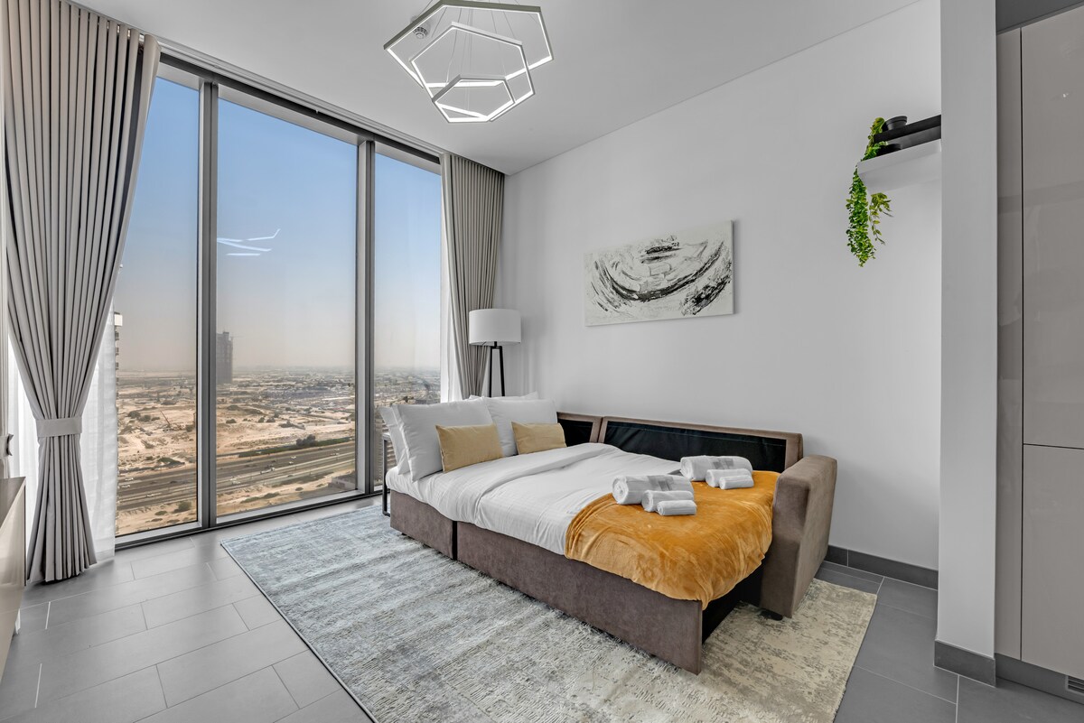 Chic studio in the heart of Dubai with stunning skyline views from your private balcony. Just a 7-minute walk to The Dubai Mall and the iconic Burj Khalifa, you’ll be steps away from world-class shopping, dining, and entertainment. The apartment is fully equipped for business or leisure stays, with luxe hotel-style linens, fast WiFi, a smart TV, and a complete kitchenette. Guests also enjoy free access to the gym and outdoor infinity pool in the building.