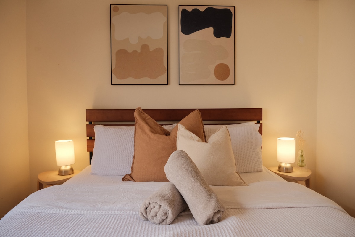 Enjoy a peaceful stay in this 2-bedroom unit with A/C and work desks—ideal for rest, remote work, or small group travel. Includes a queen bed (for 2) and single bed (for 1). You'll have the guest area to yourself. Host uses the kitchen and laundry occasionally. The home has some age, so minor noise may carry—especially in the single room next to the bathroom. Please finish washing up by 10 PM on weekdays. Close to Curtin, cafés, airport, and CBD.
