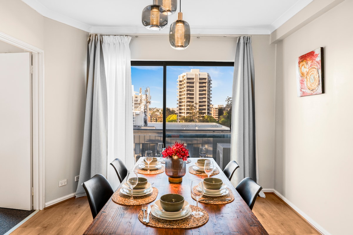Bright 2 BD Apartment in Central Perth with views