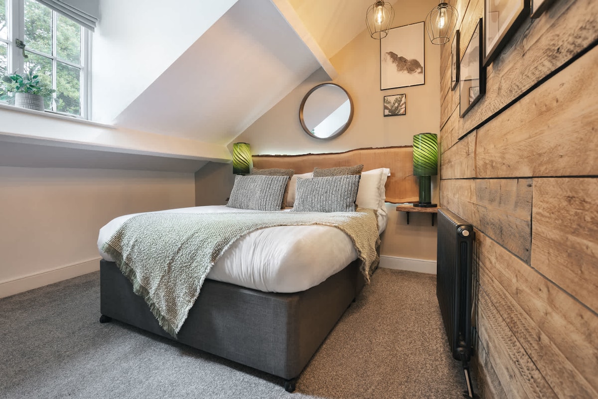 The Hermitage Lodge, set within the peaceful grounds of Lonsdale Villa in central Penrith (just a 5-minute walk to town). Offers a tranquil escape surrounded by trees with views stretching to the distant mountains. Perfect for exploring the North Lakes, Pennines and nearby Scottish border. The lodge features two stylish bedrooms—one double and one twin—and a private hot tub, modern kitchen and inviting living space, making it an ideal base for families, couples or friends.