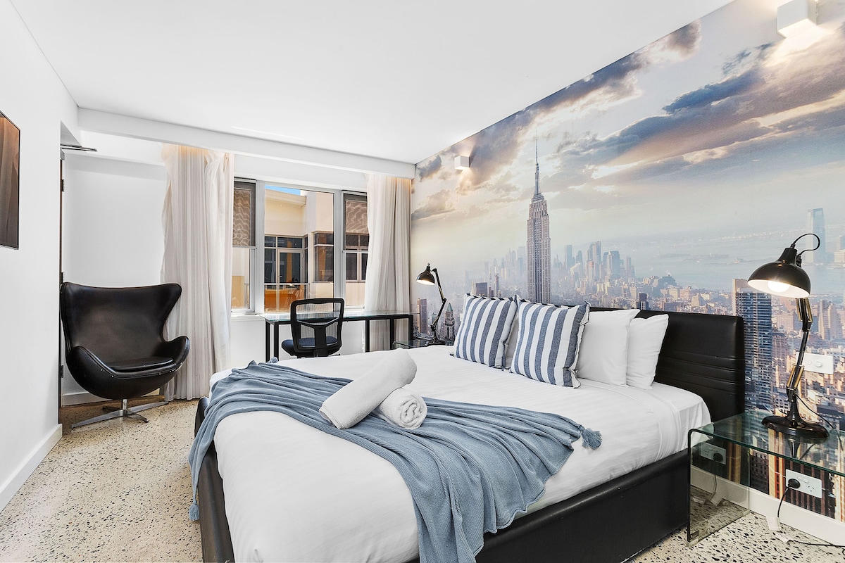 This stylish and comfortable 1-bedroom hotel room is perfect for both relaxation and productivity. The room features a cosy queen bed, a private bathroom and a balcony with one chair. Enjoy access to a communal kitchen with modern appliances, perfect for preparing meals during your stay. Take in stunning views and unwind in the shared rooftop area. Whether you're visiting for work or leisure, this room offers everything you need for a pleasant and convenient stay.