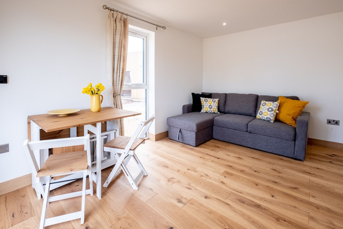 Tranquil, Stylish and Luxurious. "Landscape" is a brand new 2 bedroom Eco Lodge in Flatford in the heart of Constable Country . With views over Dedham Vale an Area Of Outstanding Natural Beauty. Sleeps 4 in 1 king double room and 1 twin/double room . Open plan kitchen lounge with log burner and bi-fold doors opening on to a beautiful patio with natural pond and countryside views . Charging point for electric vehicles Separate utility/boot room and bathroom. Newly built to a luxury finish.