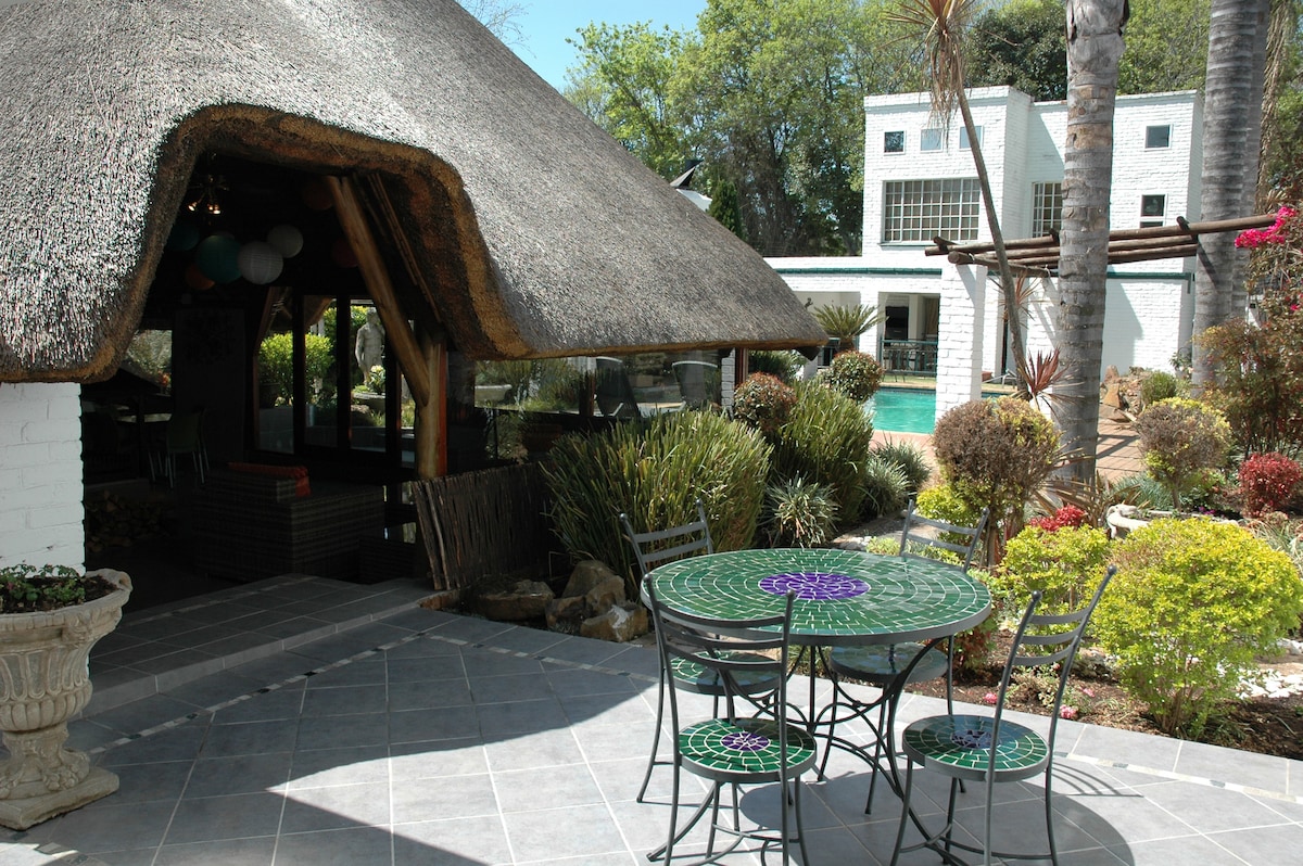 This Bed and Breakfast provides accomodation with a garden,outdoor swimming pool and a shared lounge.It is a stone throw away from Melrose Arch.it also provide private rooms with air conditioning,mini bar fridge,tea station,flat screen TV and private bathroom.Every room comes with a bed linen and towels. It is situated one(1) kilometre away from Melrose Arch,three(3 )kilometres away from Sandton City and Rosebank Mall.Nearest airport is OR Tambo International which is 15 minutes away.
