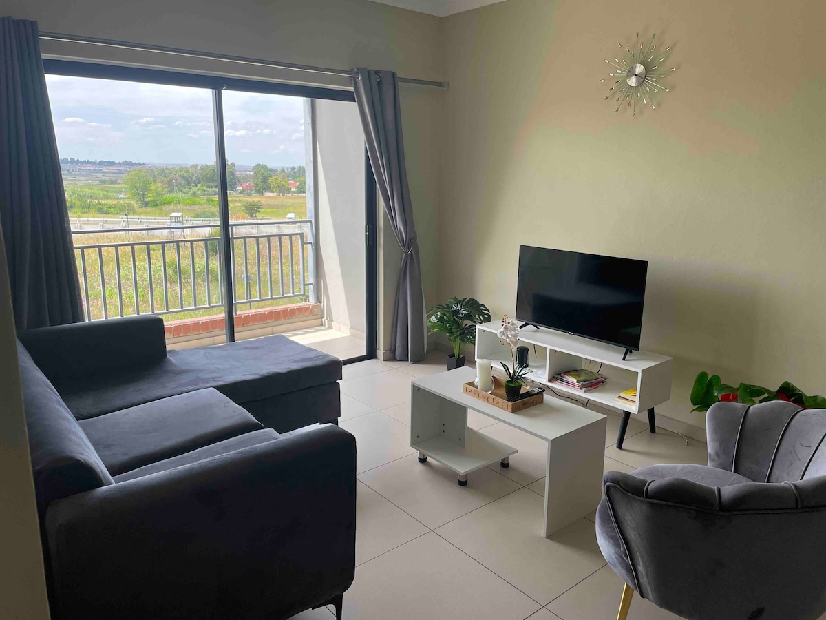 Discover a true home away from home, equipped with all the essential amenities for your comfort. Conveniently located near the Mall of Africa for your shopping needs, and right across from Waterfall City Hospital. Experience the beauty, comfort, and coziness of our space, offering 180° views of the stunning Waterfall landscape. At night, the city comes to life, offering a spectacular view from our spacious balcony. Come and enjoy this beautiful space for a one of a kind stay.