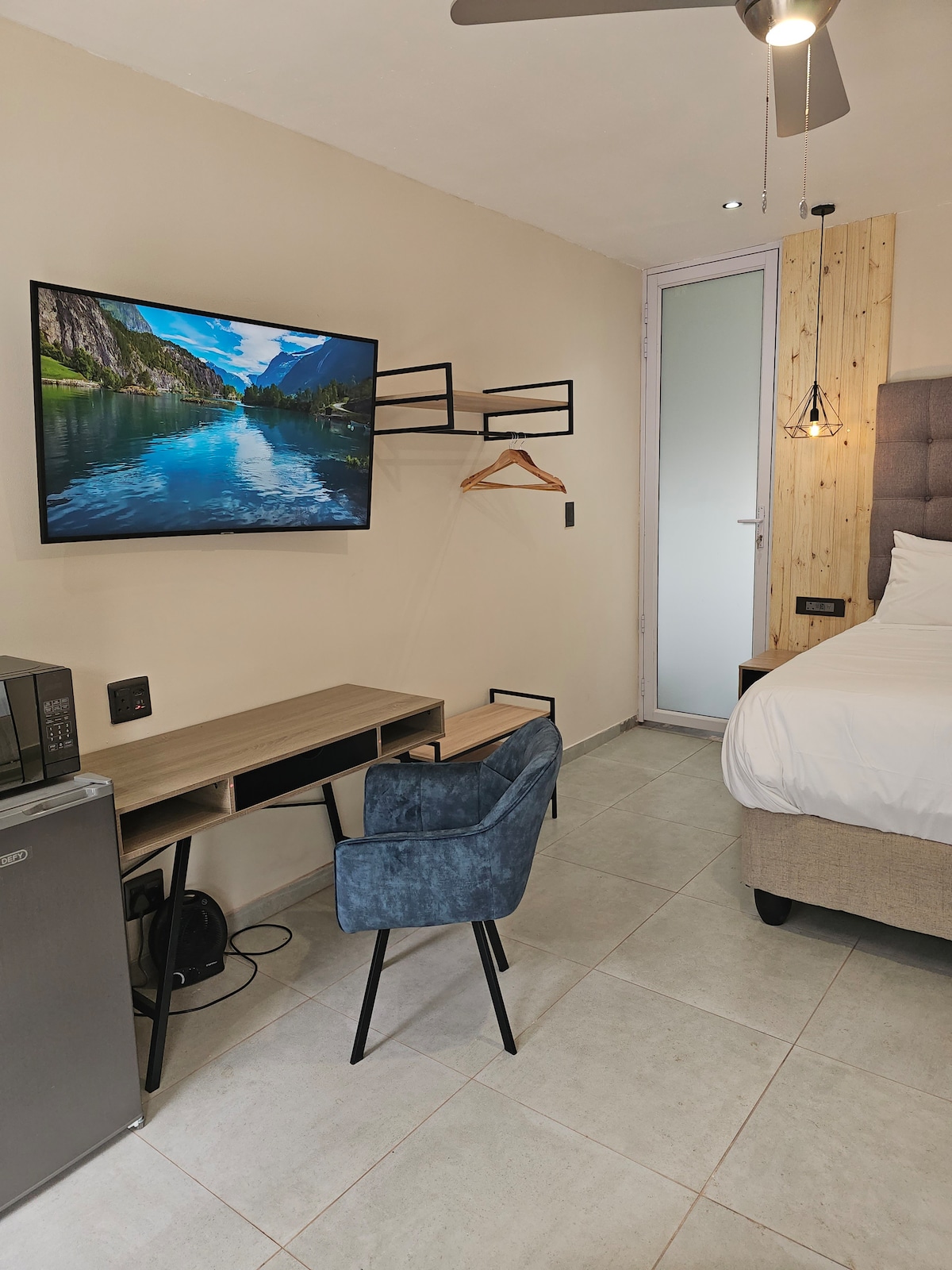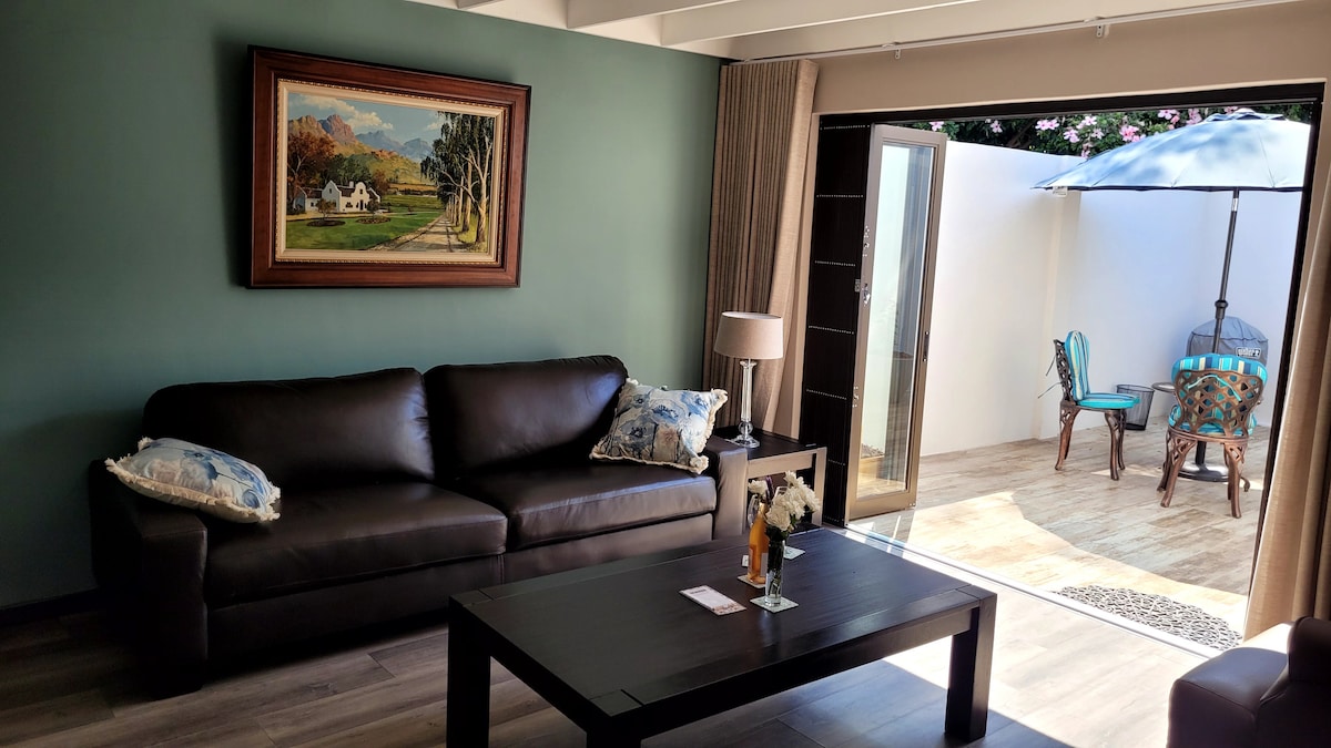 This unit is situated on the main property and you have your own entrance and secure parking. Being 10minutes from the airport it’s centrally located. We are in a 24hour enclosed area with guards, so very secure. Also around us is the best restaurants and shops which is easily accessible. It’s a peaceful environment and you,ll feel at home with the best quality amenities that I personally tried and tested. Very peaceful environment!