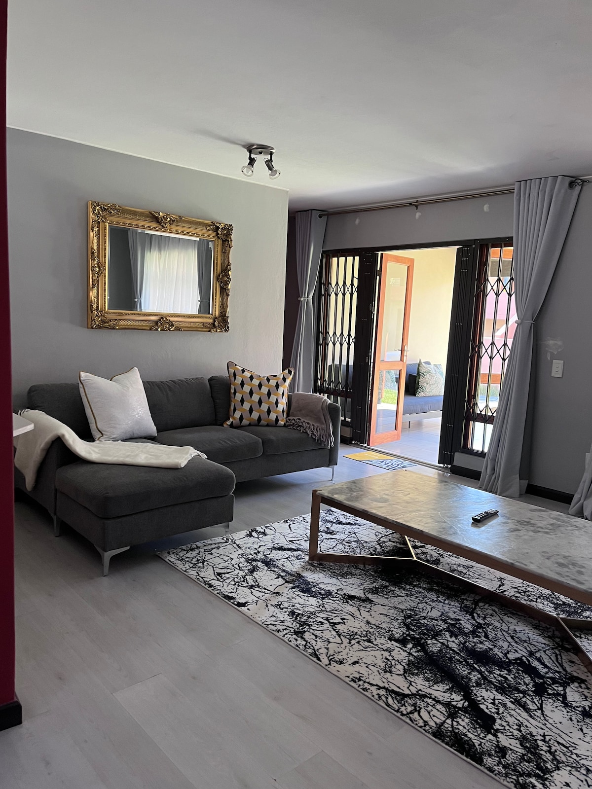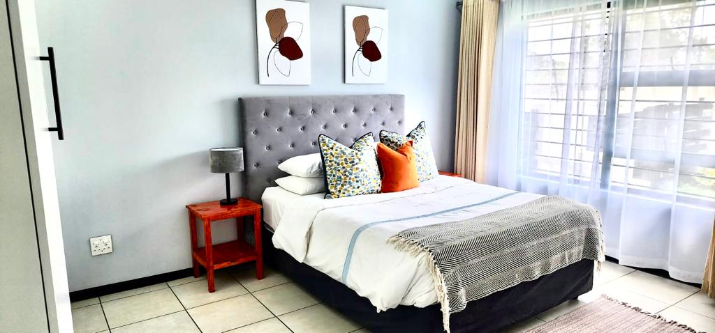 Fully furnished 2 bedroom 2 bathroom apartment with your own spacious patio. This newly decorated flat will be your home away from home with your own private entrance and parking space. You have 2 en suite bedrooms with queen beds. Spacious work desk. Comfortable lounge to relax and unwind. Fully equipped kitchen and dedicated work space. We are 15 minutes away from OR Thambo international airport and our neighborhood is very quite, beautiful and peaceful.