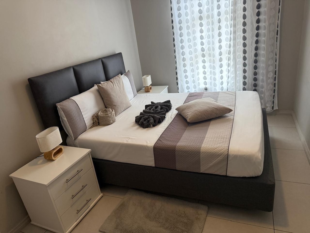 Modern, fully furnished, safe and quiet executive apartment in the heart of Melrose Arch. It's the perfect city getaway, and is suitable for both leisure and business travel. Uncapped Fibre Internet, safe and tranquil surroundings, a 65” TV (lounge) as well as a 40” TV (bedroom) both smart. Conveniently located within Melrose Arch shopping precinct with access to all stores and restaurants. Back up generator in the building, safe and secure private parking with 24 hour security 😊