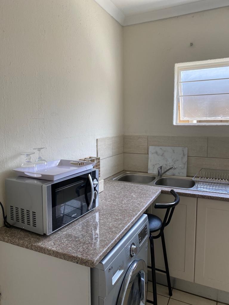Whether on a business trip, relocating, or holidaying, this centrally-located, quaint, cosy, fully furnished, modern garden apartment offers more space and privacy than you would find in any hotel. It's comfortably furnished with a super-king bed, modern kitchen with washing machine and drier. The spacious bathroom boasts both shower and bath. Add a cosy private patio with braai in lovely garden, WiFi, Smart TV, DSTV & UPS inverter and you're right at home! Just 10 min from OR Tambo & Sandton.