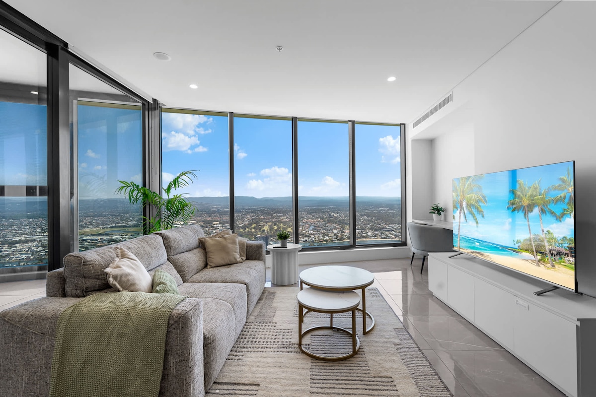 * Stylish & Colourful, Modern, GORGEOUS * Sweeping Views in ‘all’ directions (see photos). Simply STUNNING * Gorgeous NEW Ocean-themed bathrooms * FREE fast WIFI & Netflix & Parking * Beach So close! * Surf Club, Great Dining! * Bicycle coast path, 4 bicycles FREE for you, e-bikes for hire. * Easy access to Trams & Buses, Restaurants & Cafes, Theme Parks, Outdoor Adventure * External pool & spa, tennis court, BBQ area freshly renovated 2025. * Internal gym, sauna, heated pool & spa