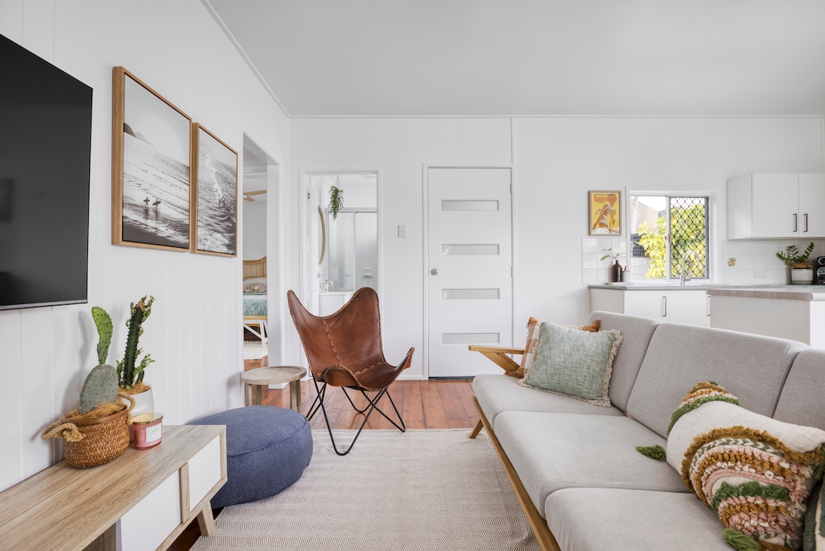 This sea view studio overlooks Tweed River and Kingscliff Beaches. Wake up and enjoy your coffee and breakfast sitting inside or out in the morning sunshine. Centrally located only 2 minutes off the M1 Pacific Highway and 5 minutes to some of the best beaches in the world. Lots of shops, pubs and clubs nearby and less than 10 mins from the Gold Coast Airport. This luxury private studio is recently renovated and will not disappoint.