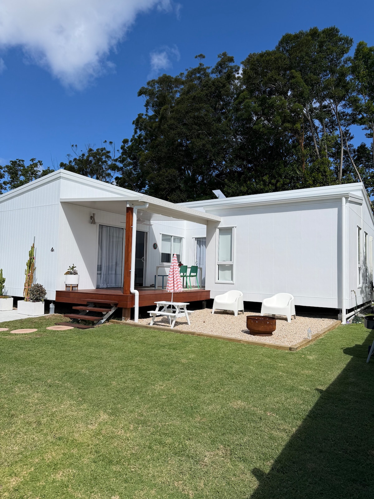 Creekside Hideaway is the ultimate family & friends getaway! Swim in your private creek, explore green open spaces, play games indoors & out. Relax in 2 outdoor baths or the open-air shower. Fully equipped kitchen, hotel-quality linens & a huge undercover area for BBQs & gatherings. Surrounded by fruit trees & bushland, it’s the perfect mix of fun & relaxation – only 20 minutes from Robina.