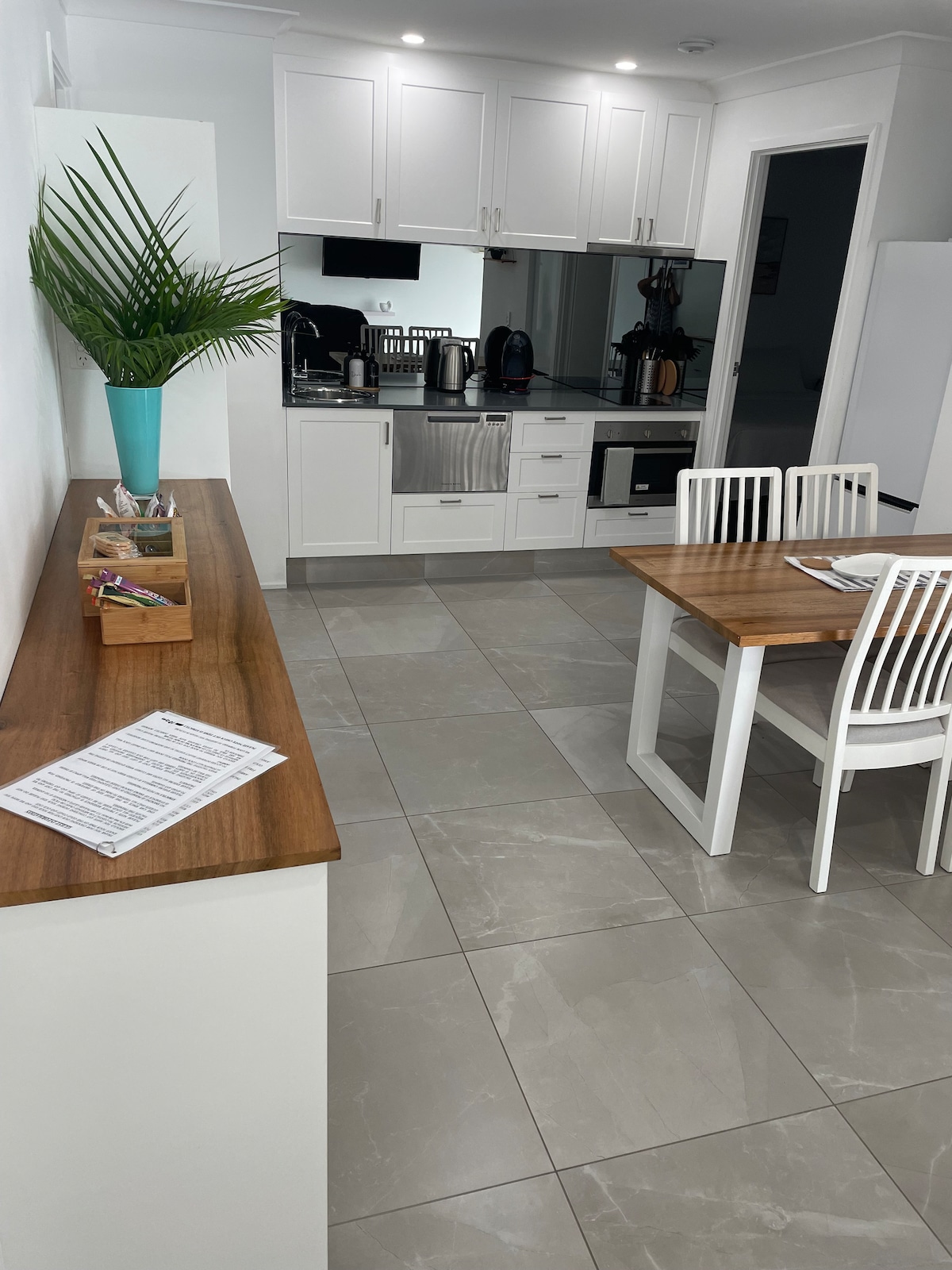 Large, light décor, main room with queen bed, kitchenette and dining, separate and very private bathroom, plus external deck. Very close to shops and medical, restaurants, cafes, pizzas, liquor outlet, small supermarket, dentist; a nearby National Park. Note - this is a secluded area of comfort and not suited to children, babies, infants of any age. Please accept apologies for this unavoidable policy. Nor is it a suitable place for wedding preparations, gatherings or any events.