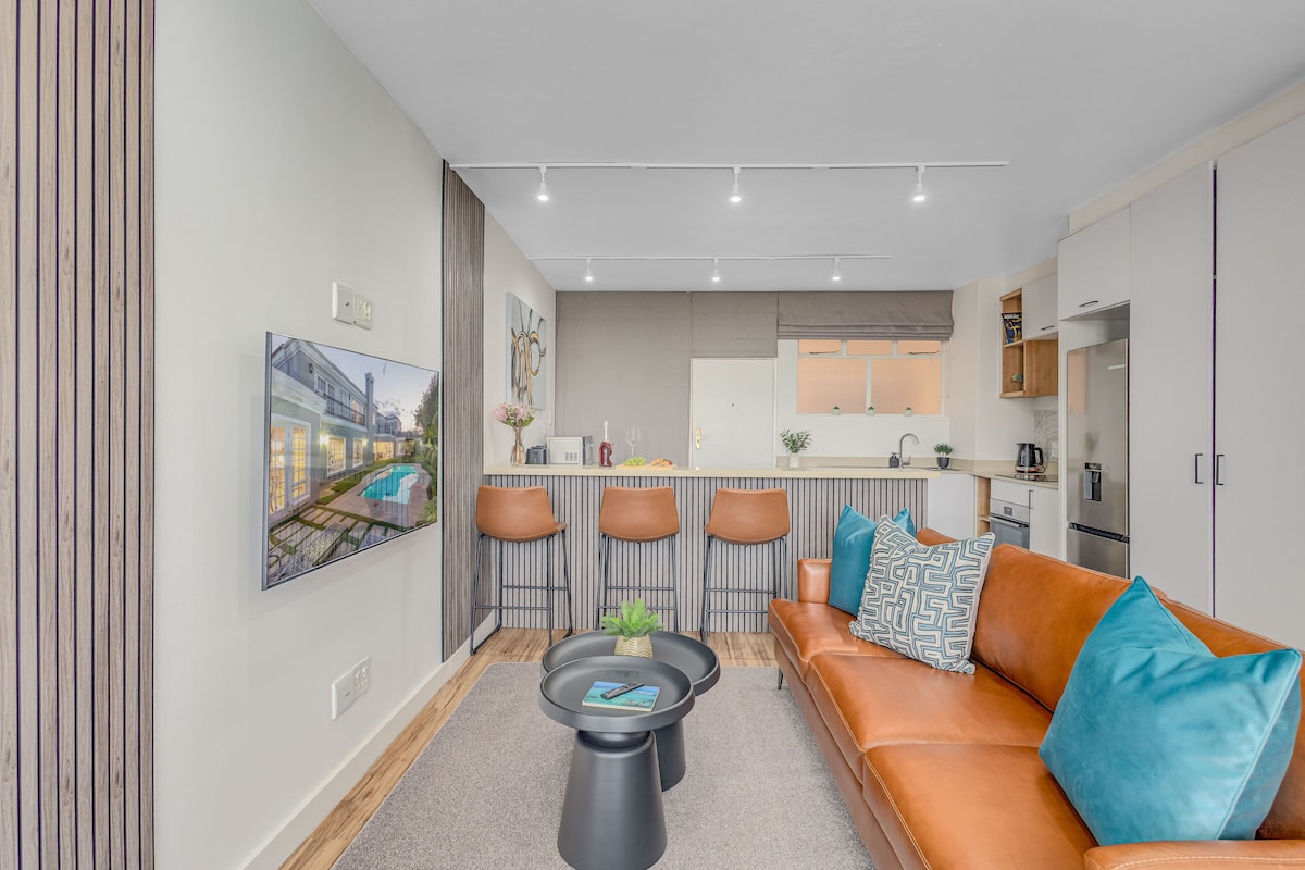 Enjoy the convenience of an integrated inverter that backs up the lights, tv, and Wi-Fi during load-shedding in this elegantly furnished modern apartment. Take in the leafy Bryanston backdrop from an amazing top floor elevation complemented by large window views and a stylish and relaxing contemporary open plan character. Cool off the heat in our sparkling pool at the clubhouse with braai facilities and a co-working area with free Wi-Fi or take a stroll in the treelined neighbourhood.