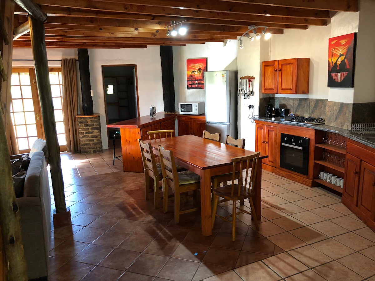 This is a self-catering Loft Chalet. The bedroom is in a cosy loft, with space anc character. All your linen and towels are provided. On the ground level you have the kitchenette, (no stove or post\pans,) with fridge, microwave, electric frying pan, toaster kettle crockery and cutlery. There is a dining table to enjoy your meals which can double as a workstation. Each unit has their own private bathroom with shower, toilet and basin.