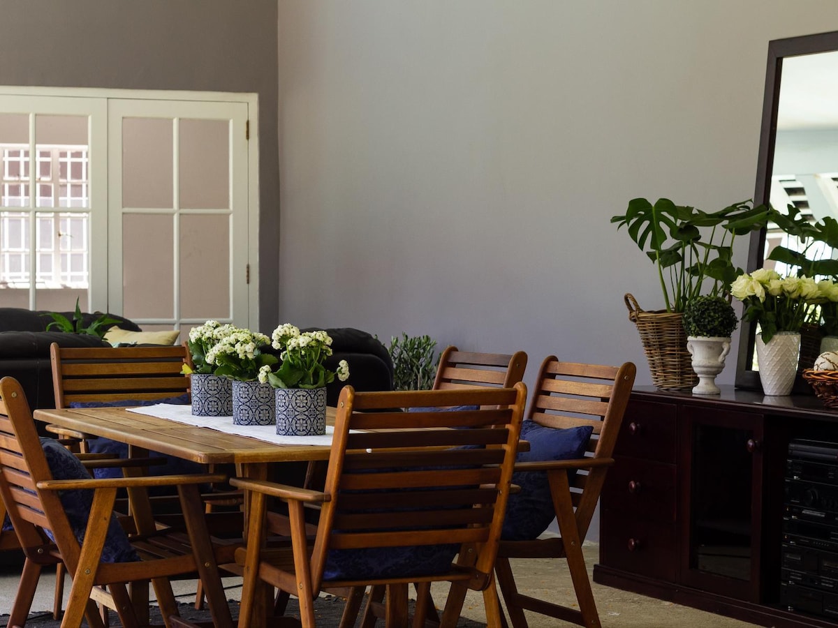Perfect for 2, the room has a luxurious queen-size bed with electric blanket and en-suite shower-only bathroom. The kitchen has all the amenities needed including an air fryer; 1 plate Indiction stove and microwave and the lounge, a TV with Wi-Fi and a desk to work at. The unit opens to a patio overlooking the garden and guests don't have to worry about loadshedding or water shortages. The place has solar and back up water. There is a gas heater for the cold winter nights.
