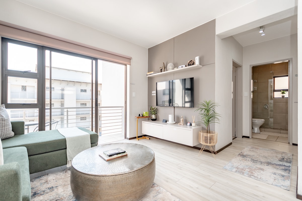Modern hotel apartment located in the heart of Sandton. Experience true hotel-style living with room service, concierge, gym, spa and other amenities. Unwind and relax in the sun by the large rim-flow pool with a cocktail from the bar, or tuck yourself away in the room with Smart TV and binge on Netflix and Amazon prime. Treat yourself to a late buffet breakfast at the restaurant and a day out shopping or a productive day of work with the uncapped Wifi and downstairs meeting rooms.
