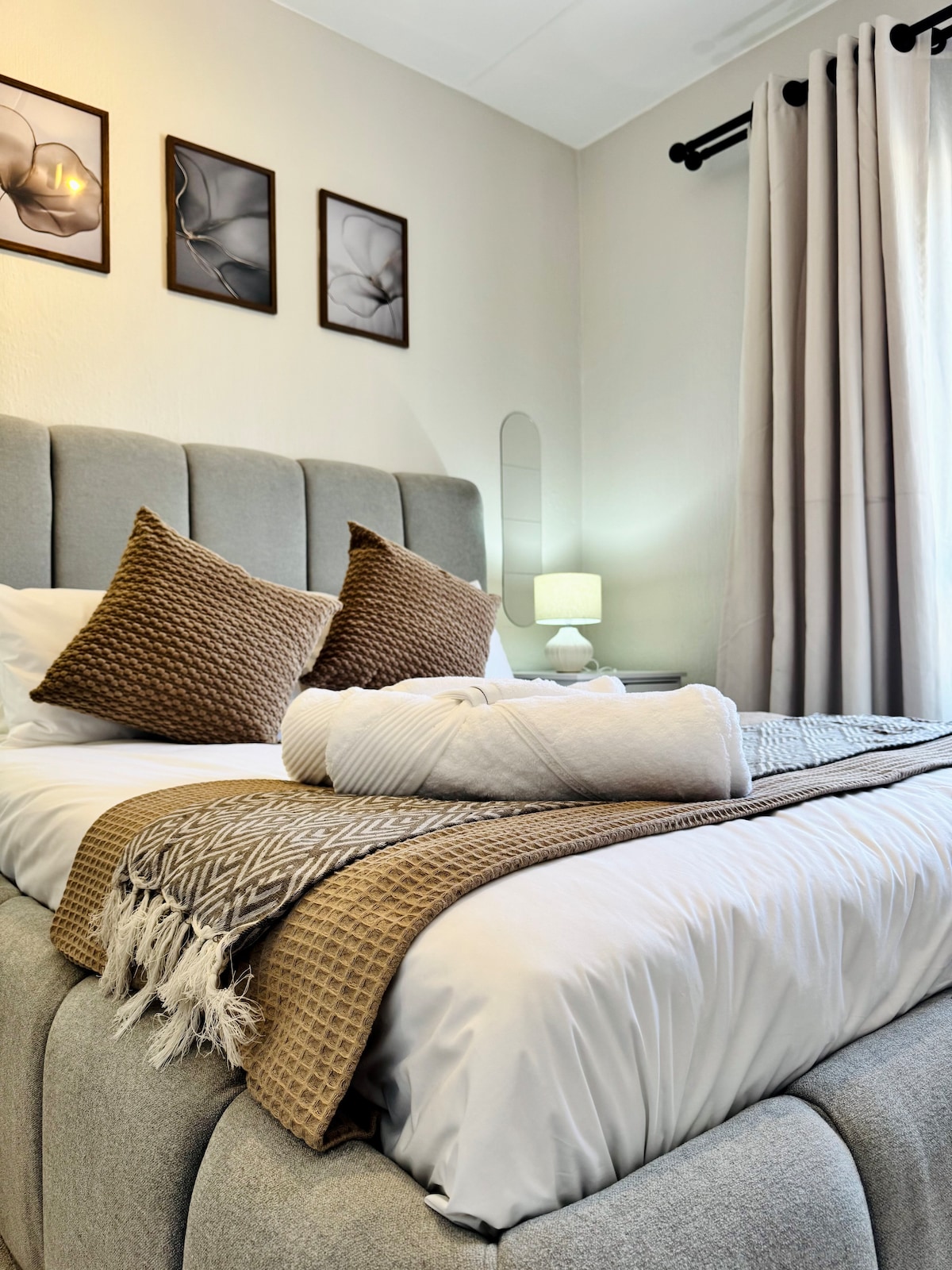 Welcome to our stunning three-bedroom, two-bathroom ground floor unit, perfect for a serene and comfortable stay. This spacious home boasts a huge private garden, ideal for relaxing, playing, or hosting a braai in the sunshine. With plenty of natural light streaming through every room, the interior feels bright and welcoming. The modern furnishings add a touch of style and comfort, making it easy to settle in and feel at home.