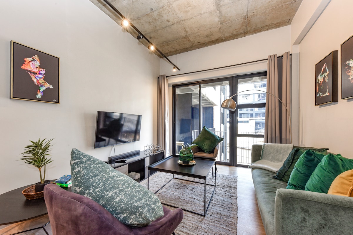 Modern, fully furnished, safe and quiet executive apartment in the heart of Melrose Arch. It's the perfect city getaway, and is suitable for both leisure and business travel. Uncapped Fibre Internet, safe and tranquil surroundings, automatic inverter, an 82” TV (lounge) as well as a 37” TV (bedroom) both smart. Conveniently located within Melrose Arch shopping precinct with access to all stores and restaurants. Back up generator in the building, safe and secure parking with 24 hour security 😊