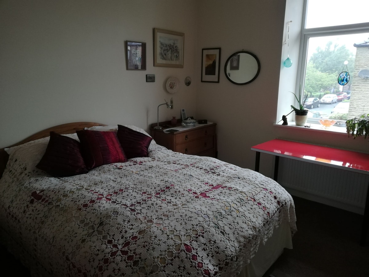 Cosy spacious room with double bed. Super fast wifi & flat screen TV with Netflix. Funky lighting. Clean bedding & towels. Free tea/coffee. 7 mins from Bradford town centre & M606. 15 mins to Halifax. Business, travellers, tourists, backpackers, short term & long term contract workers all welcome. Bronte country, Media Museum of Photography, Arts, Saltaire, Festivals, real ale connoisseurs, curry enthusiasts - near university, theatres & town centre.