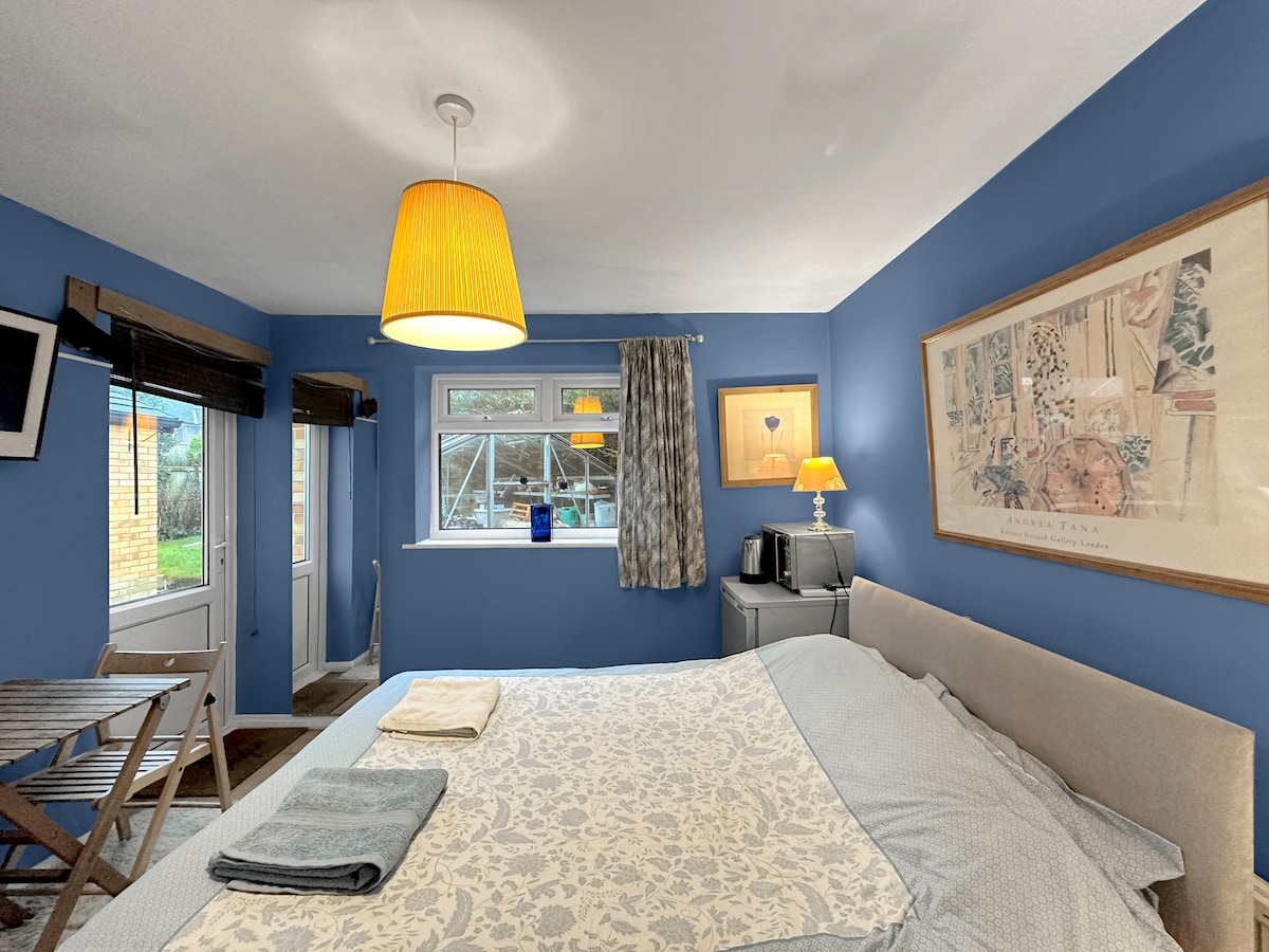 Approximately 15 min walk to Holmfirth's cafés, bars and live music venue, with off-road parking adjacent. Furnished with a scandi vibe, over one floor, the hotel-style bedroom comprises a comfy double bed, Wi-Fi, smart TV, fridge, kettle & crockery for pre-bought dining. Patio doors give access to outdoor space with seating and fire-pit. Firewood available on request. The bathroom offers an electric shower, cloakroom basin, toilet and towel rail. A perfect base to explore the Holme Valley.
