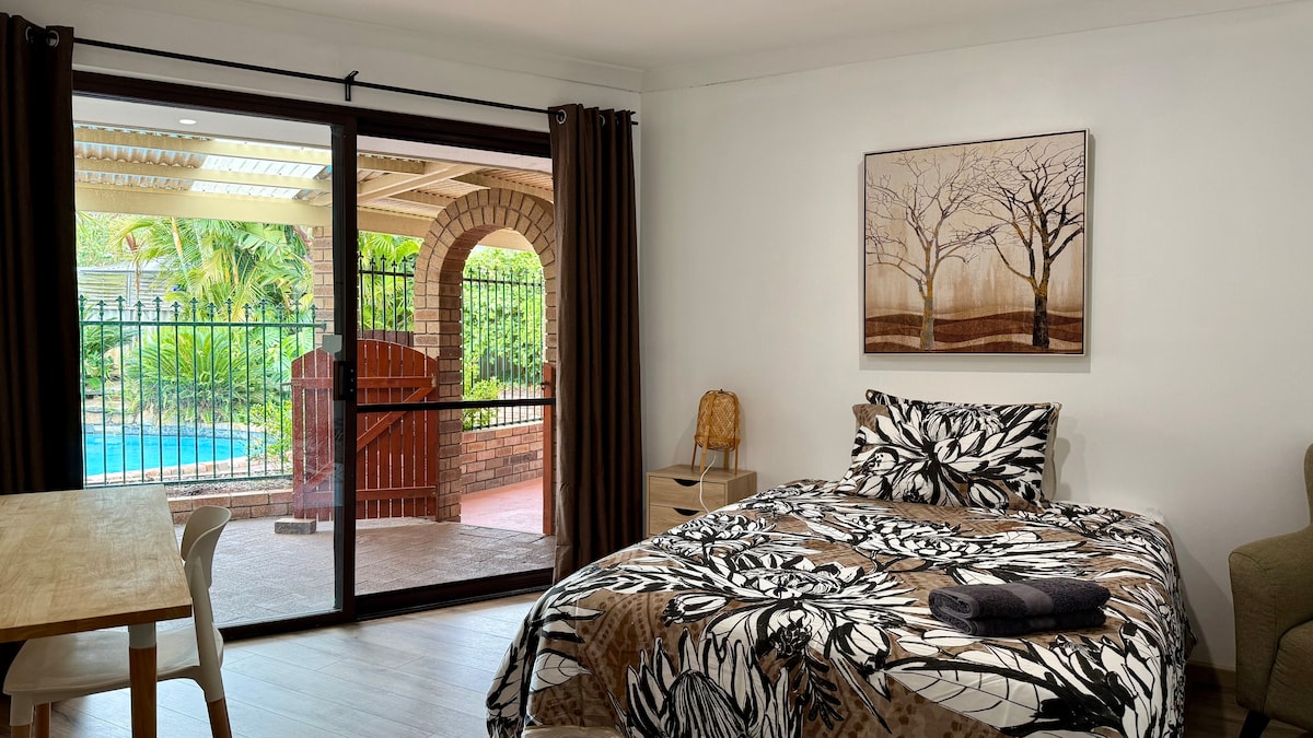 Welcome to Urban Solo “Simply Yours”, a calm and thoughtfully designed tiny-home studio for solo travellers who value privacy and convenience. Set in a quiet pocket of Bull Creek, this space feels entirely your own. Enjoy a private entry, queen bed, TV, air-conditioning, and daily essentials. A simple kitchen includes a fridge, microwave, kettle, and utensils for light meals. Next door is “The Pod”, another solo tiny home, and the owner lives onsite, offering security while respecting privacy.