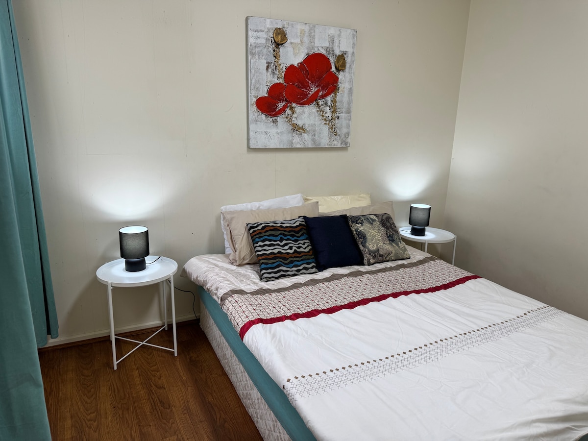 This is a home where you can unwind and relax, with a secluded space that ensures complete privacy. The spacious bathroom features double sinks—light a scented candle, pour a glass of wine🍷, and lie in bed with your loved one, enjoying the sunset, starry sky, and morning sunrise… Located in a quiet, safe community, the area is beautiful and serene. Just a 5-minute drive to The Glen shopping center and close to the tram stop. Grab your special someone and embark on a romantic journey.h