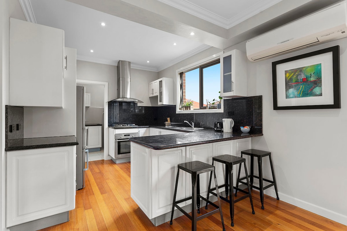 Spacious 5 bedroom home just a 3 minute walk to Jordanville Station. Easy access to Monash Uni, Deakin Uni and Chadstone Shopping Centre. Perfect for families, business travellers, wedding guests, or those attending events and concerts. Sleeps 9+ guests. Clean, comfortable, and fully equipped with front and back gardens and free parking. Consistently rated 5 stars from all guests – your ideal Melbourne stay! Enjoy a quiet, safe neighbourhood with everything you need nearby.