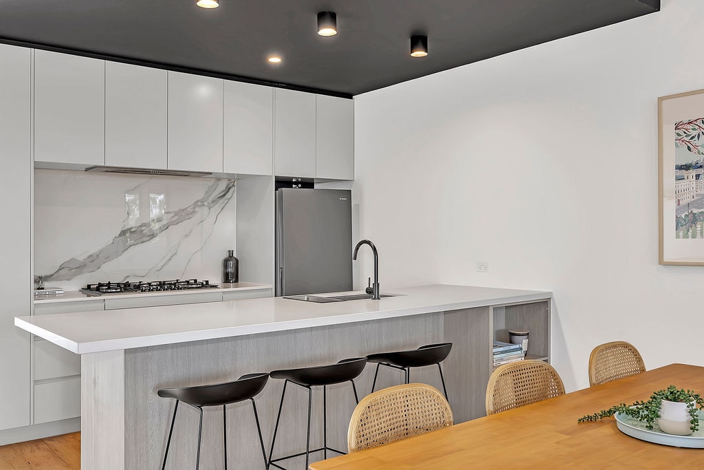 Indulge in contemporary luxury with our stunning townhouse. The spacious kitchen boasts a modern design, featuring a large benchtop, double oven, and all the amenities you need. Entertain seamlessly in the bright and open living spaces, or step outside to the north-facing backyard with an alfresco area, BBQ, and a convenient bar fridge. Experience sophistication in our modern-designed bathrooms, completing the perfect blend of style and comfort for your stay.