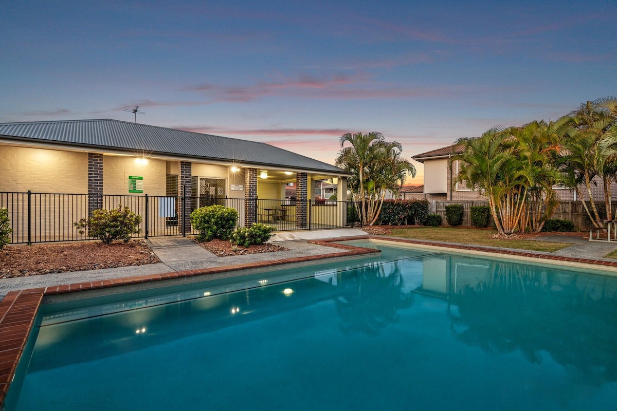 Only 10km to the CBD, 10 minutes from the airport & Brisbane Entertainment Centre, major shopping centre 2 mins A beautiful cool, breezy home with three spacious bedrooms (two x queens, 1x double plus an extra sofa bed in living area) open plan living/dining area. Back door opens onto a relaxed undercover patio area where you can chill, have a bbq, (play pool or have a swim.-shared space) Out back,there’s an open parkland with lovely walking/cycling tracks. Bus out front, train 10min walk