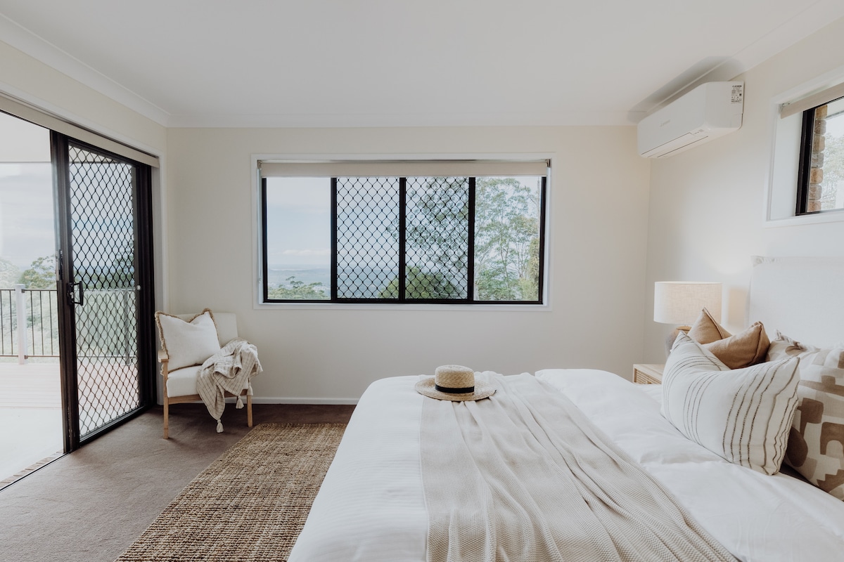 Welcome to Ocean View Road Retreat, a secluded getaway nestled in the Sunshine Coast hinterland. Here you will find our 3 bedroom architecturally designed home styled with a retro-inspired charm: set on 1/2 an acre of established gardens and bordering 100 acres of natural bushland. Relax and recharge at your own pace while having everything you need at your doorstep. With our peaceful haven as your base, take advantage of all that the Sunshine Coast beaches and hinterland have to offer.
