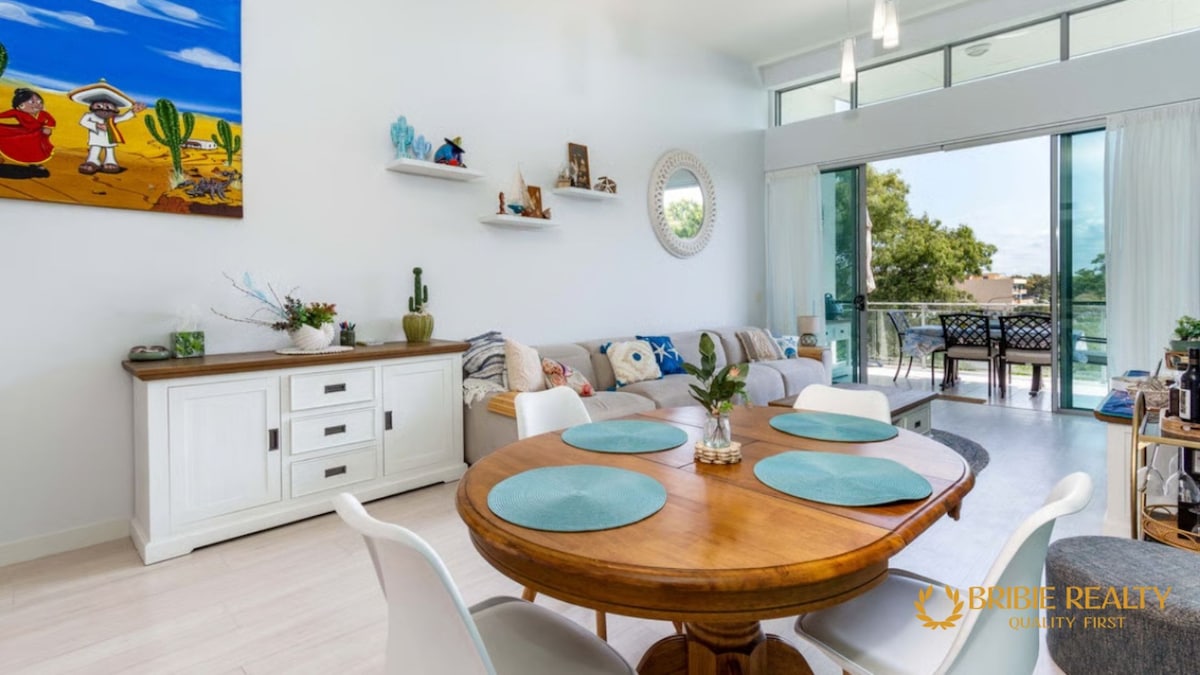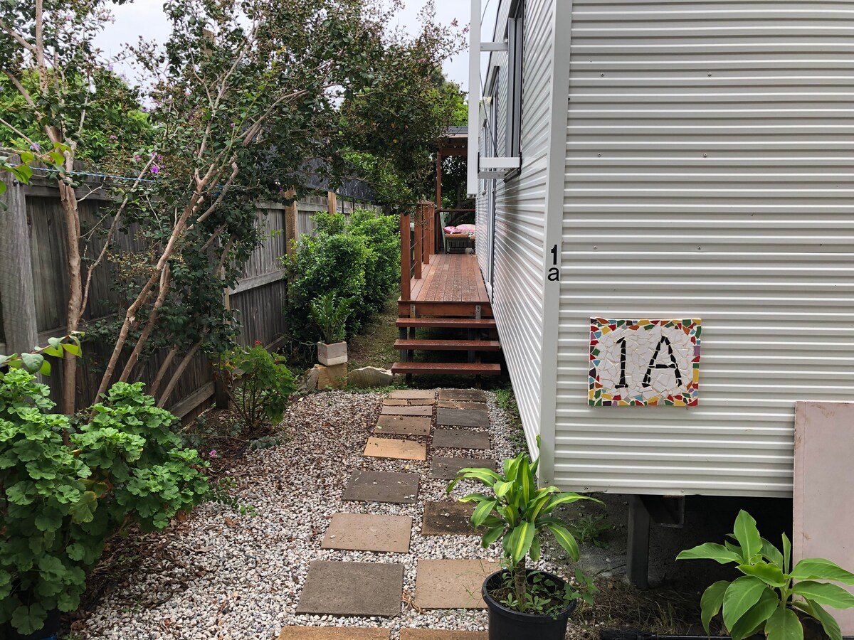 Separate self contained apartment with your own private entry, sitting area, full kitchen, bathroom, laundry, bedroom with queen size bed. Everything you need to enjoy your stay on beautiful Bribie with reverse cycle air conditioning, ceiling fans, free wi-fi and Netflix. Central location 5min walk to Bribie's major shopping centre for your groceries, beverages and restaurant options. 10min walk to picturesque Pumicestone passage, 20min walk to Sandstone Point Hotel & 10min drive to surf beach.